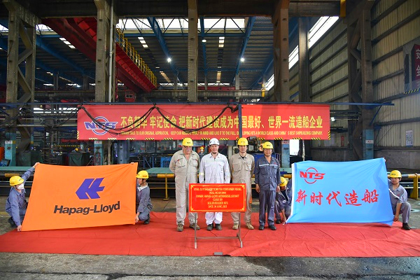 On June 30, 2023, the steel cutting of one 13,000 TEU Container Vessel bearing builder's hull no.0213004 has been carried out successfully by New Times Shipbuilding Co., Ltd.. The representatives from shipyard, Hapag-Lloyd and BV Classification Society attended and witnessed this event.