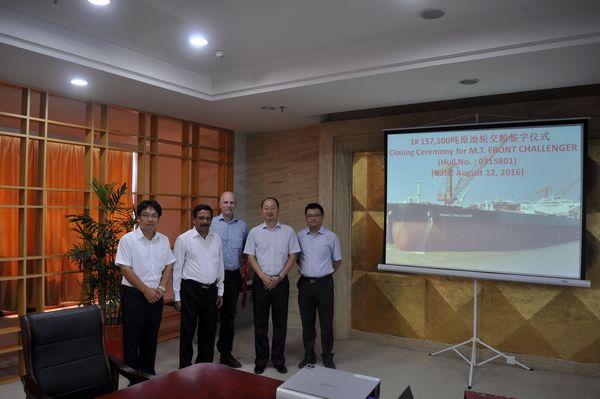 On Aug. 12th, 2016, No.1 157,500 DWT Crude Oil Tanker was successfully delivered to her contracted Buyer Frontline, our CEO Mr. Liu Haijin, Executive Deputy General Manger Mr. Zhang Yuyong and representatives from owner attended this delivery ceremony.