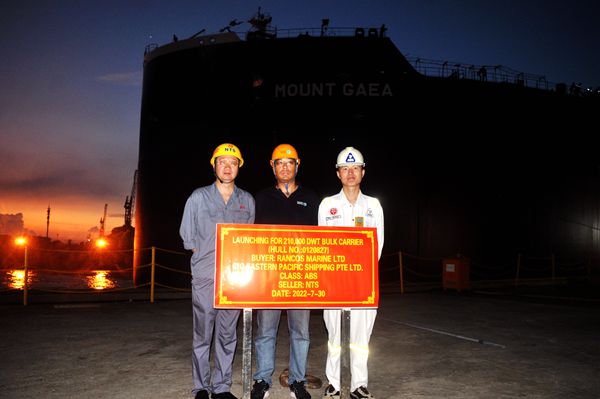 On July 30, 2022, the launching ceremony of one 210,000 DWT Bulk Carrier bearing builder's hull no.0120827 has been carried out successfully by New Times Shipbuilding Co., Ltd. Our CEO Mr. Liu Haijin, Executive Deputy General Manager Mr. Zhang Yuyong, the representatives from EPS Site Manager Mr. Ni Jie and representatives from ABS classification society attended and witnessed the ceremony together.