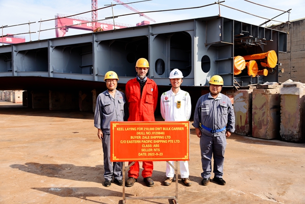 On September 23, 2022, the keel laying of one 210,000 DWT Bulk Carrier bearing builder's hull no. 0120846 has been carried out successfully by New Times Shipbuilding Co., Ltd.. Representatives from shipyard and EPS Site office together with the representatives from ABS classification society attended and witnessed this event.