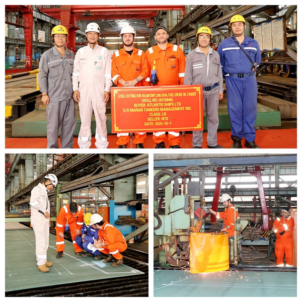 On October 7, 2025, the steel cutting of one 155,500 DWT LNG Dual Fuel Crude Oil Tanker bearing builder's hull no.0315846 was carried out successfully by New Times Shipbuilding Co., Ltd.. The representatives from shipyard, Maran Site Team and LR classification society attended and witnessed this event.
