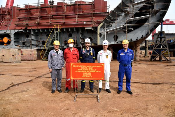 On April 27, 2022, the keel laying of one 210,000 DWT Bulk Carrier bearing builder's hull no. 0120827 has been carried out successfully by New Times Shipbuilding Co., Ltd.. The representatives from EPS Site Manager Mr. Ni Jie together with the site members and representatives from ABS classification society attended and witnessed this event.