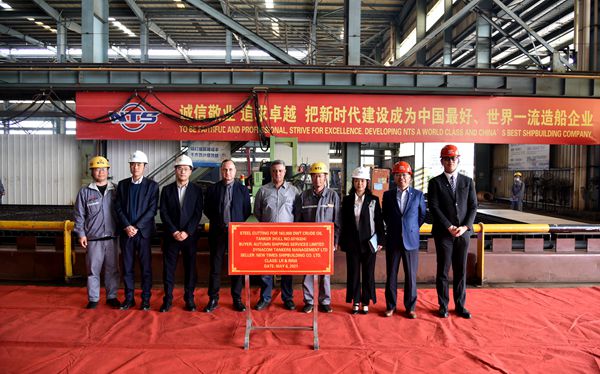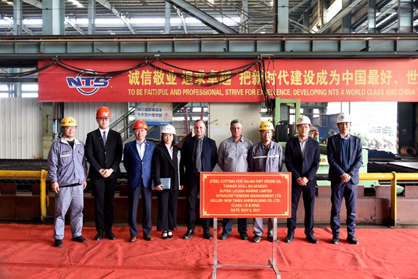 On 6 May, 2021, the steel cutting ceremony of No.24 and No.25 163,000 DWT Crude Oil Tankers has been carried out successfully by New Times Shipbuilding Co., Ltd. Our General Manager Assistant Mr. Ding Baiying and the representatives from the owner Dynacom Tankers Management Ltd and both LR and RINA classification society attended this event.