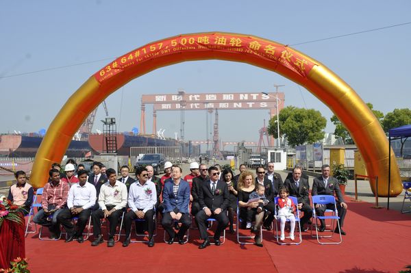 On April 18, the naming ceremony of No.63 & No.64 157,000 DWT Crude Oil Tanker was held ceremoniously in our shipyard and the vessels were named as "SIKINOS  I" and "TILOS  I" respectively. Executive Vice President Mr. Zhang Yuyong conducted this ceremony, our CEO Mr. Liu Haijin and representatives from the Class and the Shipowner attended this ceremony.