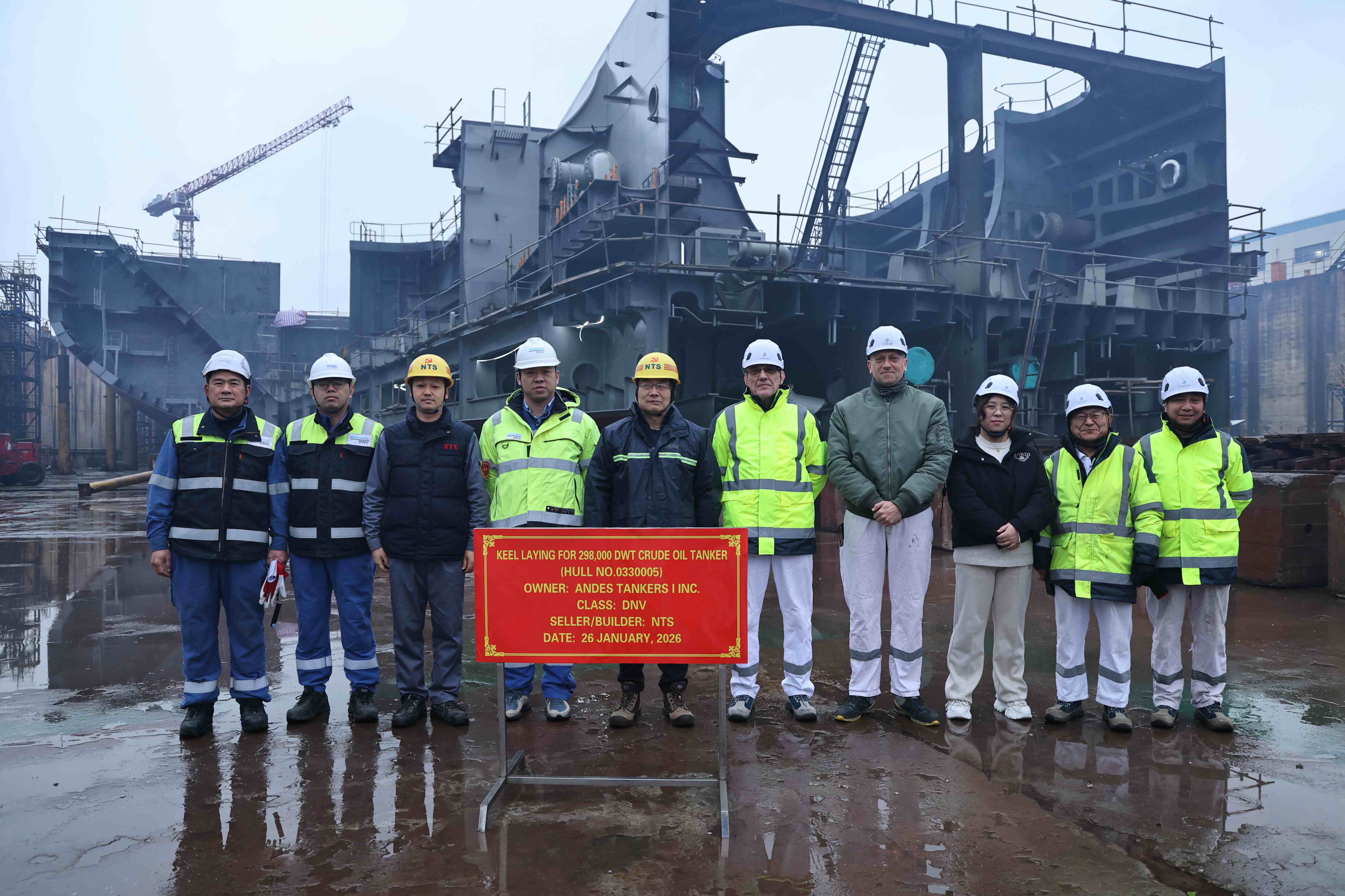 On January 26, 2026, the keel laying of one 298,000 DWT LNG Dual Fuel Crude Oil Tanker bearing builder's hull no.0330005 was carried out successfully by New Times Shipbuilding Co., Ltd.. The representatives from shipyard, Andes site team and DNV classification society attended and witnessed this event.