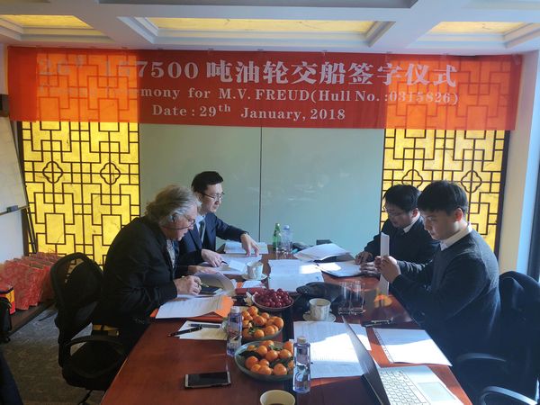 On January 26, 2018, the closing ceremony for No.26 157,500 DWT Crude Oil Tanker was held in Shanghai. Our Executive General Manger Mr. Zhang Yuyong and representatives from Owner Dong-A Tanker attended this ceremony. The delivery documents for this ship were successfully signed by both parties.