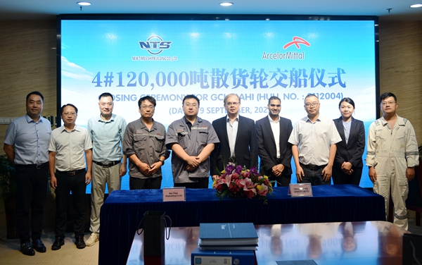 On September 19, 2023, the closing ceremony for 4# 120,000 DWT Bulk Carrier with Hull No.0112004 was held at the meeting room on 8th floor of New Times Office Building. Our Executive Deputy General Manager Mr. Zhang Yuyong, Deputy General Manager & Executive Director Mr. Yuan Heng and the owner's representative were present. The vessel was smoothly and successfully delivered by us and accepted by the Owner.