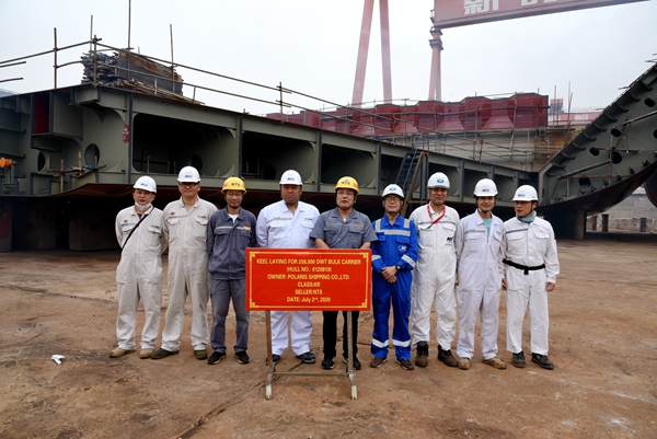 On July 2, 2020, the Keel Laying Ceremony of No.19 208,000 DWT Bulk Carrier has been carried out successfully by New Times Shipbuilding Co., Ltd. Executive General Manager Mr.Zhang Yuyong, General Manager Assistant Mr.Ding Baiying from New Times Shipyard, Mr.Han from Owner POLARIS and Mr.Park from Class KR attended and witnessed the ceremony together.