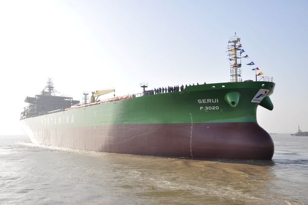 At 8:30 a.m. of December 3rd, Executive Vice President Mr. Zhang Yuyong , VP Mr. Zhu Hangang and Representatives from PT Pertamina Group were present at the drydock for the ribbon-cutting ceremony of launching for No.2 & No.3 40,000LTDW Crude Oil Tankers, witnessing the smooth launch of these two vessels.