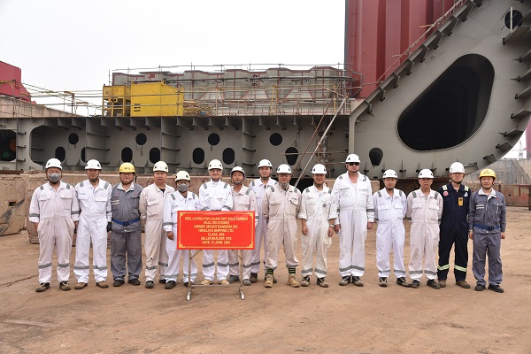 On June 13, 2023, the keel laying of two units of 210,000 DWT LNG DUAL FUEL Bulk Carriers with Hull Nos.0120839/40 has been carried out successfully by New Times Shipbuilding Co., Ltd.. The representatives from Himalaya Site Manager Mr. Davor Radic together with his site members and the representatives from ABS classification society attended and witnessed this event.