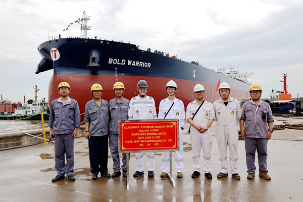 On June 19, 2025, the launching ceremony of one 157,000 DWT Crude Oil Tanker bearing builder's hull no.0315881 has been carried out successfully by New Times Shipbuilding Co., Ltd. The representatives from Polembros Site Office, LR classification society and shipyard attended and witnessed the ceremony together.