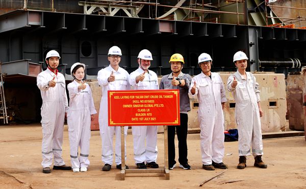 On July 1, 2021, the keel laying of one 156,500 DWT Crude Oil Tanker bearing builder's hull no.0315833 has been carried out successfully by New Times Shipbuilding Co., Ltd.. Our Executive Deputy General Manager Mr. Zhang Yuyong, the Owner Mr.Pai Hong Boon, representatives from SINGFAR Site Manager Mr. Viktor Firsov together with the site members and representatives from LR classification society attended and witnessed this event.