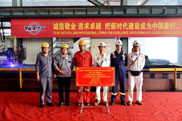 On August 17, 2021,  the steel cutting of one 210,000 DWT Bulk Carrier bearing builder's hull no.0120826 has commenced. Our Executive Deputy General Manager Mr. Zhang Yuyong, representatives from EPS Site Manager Mr. Ni Jie together and representatives from ABS classification society attended and witnessed this event.