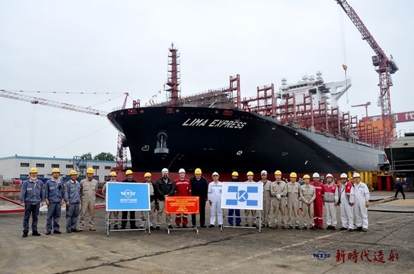 On May 22, 2023, the launching ceremony of one 13,000 TEU Container Vessel bearing builder's hull no.0213001 has been carried out successfully by New Times Shipbuilding Co., Ltd. Our Vice President Mr. Zhu Bingkang, CEO Mr. Liu Haijin, Executive Deputy General Manager Mr. Zhang Yuyong, the representatives from Chartworld Site Manager Mr. Jagor Kalinic and representatives from BV classification society attended and witnessed the ceremony together.