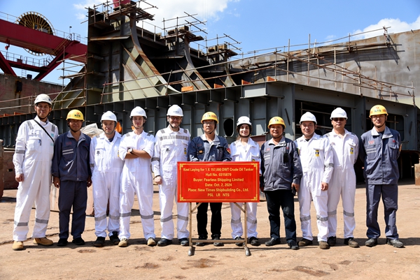 On October 2, 2024, the keel laying of two units of 157,000 DWT Crude Oil Tankers bearing builder's hull nos.0315879 and 0315880 has been carried out successfully by New Times Shipbuilding Co., Ltd. The representatives from Polembros Site Office, LR classification society and shipyard attended and witnessed the ceremony together.