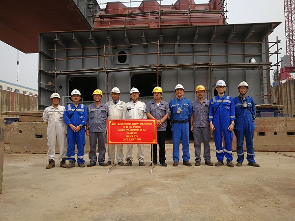 On July 5, 2019, the keel laying of No.2 325,000 DWT Ore Carrier was held in Drydock No.2. Our Executive General Manger Mr. Zhang Yuyong and representatives from the owner Pan Ocean and KR classification society attended this event.