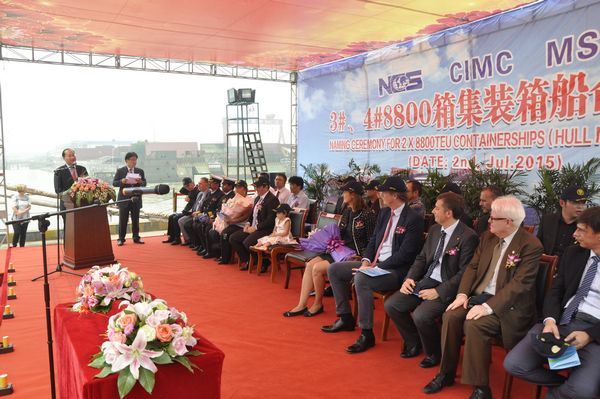 Executive Vice President Mr. Zhang Yuyong conducted this ceremony, the leadership of our company CEO Mr. Liu Haijin, VP Mr. Zhu Hangang, GM Assistant Mr. Du Jiang, GM Assistant Mr. Zheng Zhong, Representatives from CMIC, Class and the Charterer MSC attended this ceremony.