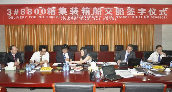 On morning of the same day, No.3 8800 TEU Container ship was delivered to CIMC along with signing by Mr. Zhang Yuyong and Representative from CIMC. No.4 8800 TEU Containership is also expected to be delivered in recent days.