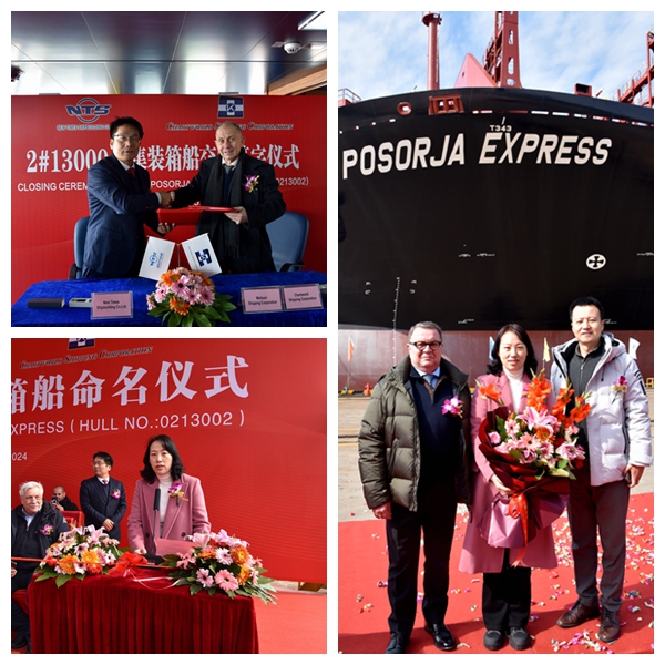 On January 25, 2024, we held naming ceremony for one 13000 TEU Container Vessel with Builder's Hull No.0213002. Our CEO Mr. Liu Haijin, Executive Deputy General Manager Mr. Zhang Yuyong, Chartworld Shipping Corporation MD - Mr. Antonios Faraklas, Hapag Lloyd Hamburg - Senior Director Mr. Lutz-Michael Dyck, BV New Construction Dept. Manager in China -  Mr. Christophe Vaes and other VIP guests attended this ceremony. Godmother Mrs. Zhu Jie named the vessel for "POSORJA EXPRESS".