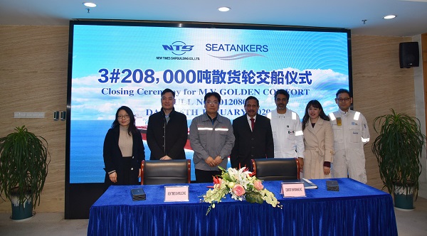 On January 6, 2020, the closing ceremony for 3# 208,000 DWT Bulk Carrier was held at the meeting room on 8th floor of New Times Office Building. Our Executive General Manger Mr. Zhang Yuyong, FRONTLINE site manager Mr.Caeiro,  and LR site manager Mr.Kim attended this ceremony. The vessel was smoothly and successfully delivered by us and accepted by the Buyer.