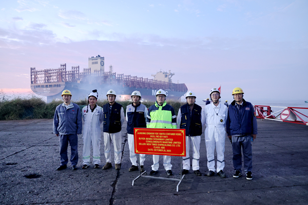 On October 25, 2025, the launching ceremony of one 11,400 TEU Container Vessel bearing builder's hull no.0211407 was carried out successfully by New Times Shipbuilding Co., Ltd. The representatives from MSC site office, ABS classification society and shipyard were present and jointly witnessed the events.