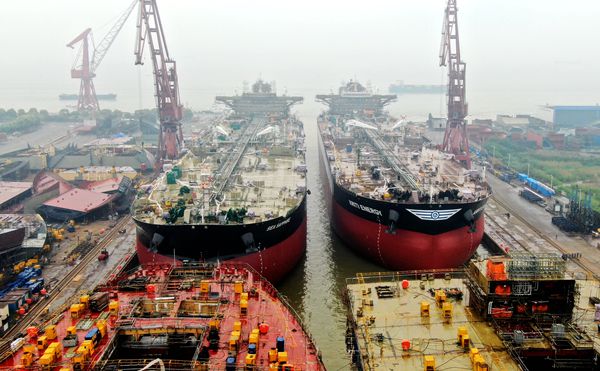 4月23日上午,公司3#塢區(qū)域內(nèi)建造的42#54#156500噸油船相繼順利駛出船塢,?恐留秆b碼頭,下水大節(jié)點如期實現(xiàn)。