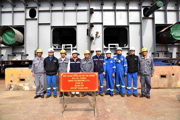 10月28日上午,3#325000噸VLOC船體合攏儀式在2#塢舉行,公司副總經(jīng)理朱韓鋼、總經(jīng)理助理徐震宇與韓國船東代表、KR船級社代表等出席活動,該船船體合攏工作全面展開。