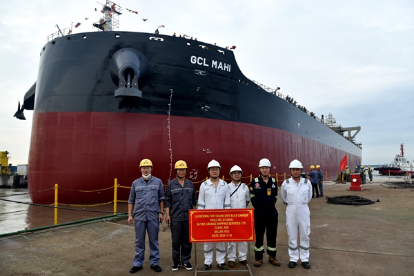 7月19日,公司1#塢迎來船舶下水盛事,4#120000噸散貨船、34#50000噸Ⅱ類化學品船分別在拖輪的牽引下駛離船塢,?恐链棒秆b碼頭,大節(jié)點目標順利實現(xiàn)。