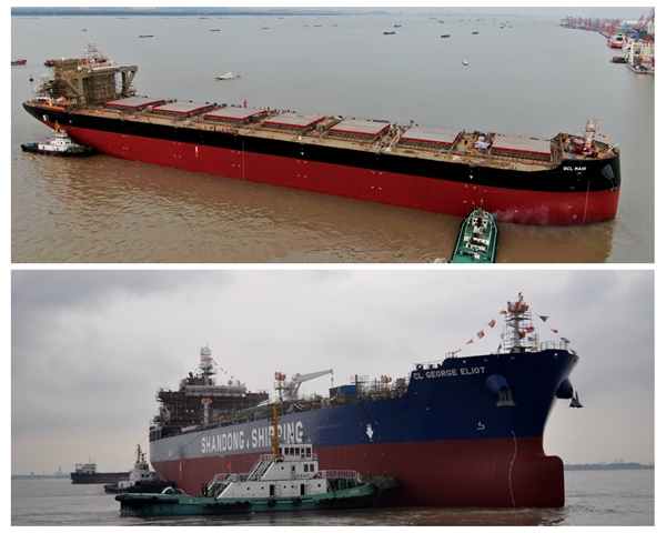 4#120000噸散貨船、34#50000噸Ⅱ類化學品船順利下水