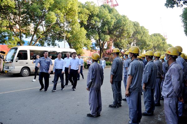 7月5日下午,泰州市委副書記湯成快到公司檢查防臺防汛準(zhǔn)備工作,董事長袁凱飛、副董事長朱炳康、黨委書記周燦榮陪同。靖江市委副書記、統(tǒng)戰(zhàn)部部長陶德喜,副市長于政參加檢查活動。