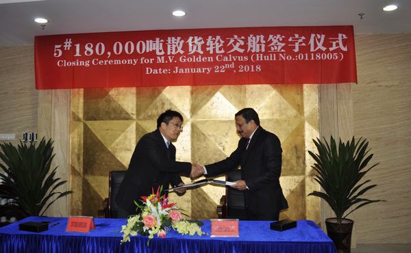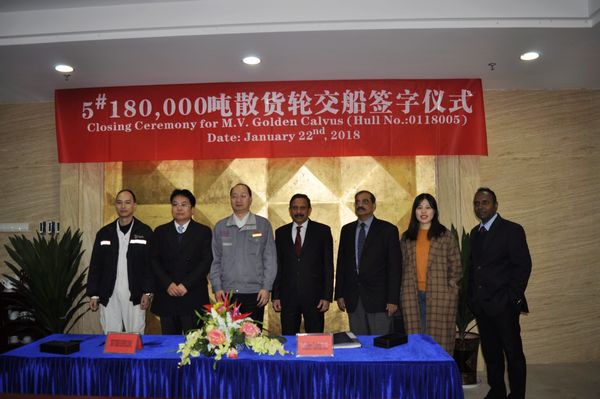1月22日上午,5#180000噸散貨船交付船東。