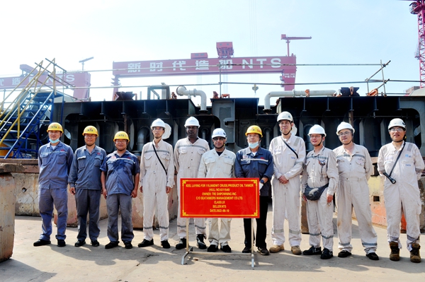 8月10日上午,公司在2#塢舉行船舶進(jìn)塢合攏儀式,40#115000噸原油/成品油船船體結(jié)構(gòu)開始進(jìn)塢搭載組裝。