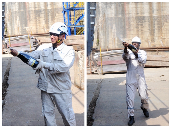 公司常務(wù)副總經(jīng)理張玉永、船東挪威船東Frontline公司現(xiàn)場經(jīng)理RAMAN、LR船級社代表等嘉賓出席活動。挪威船東Frontline在我們企業(yè)訂制了5艘115000噸原油/成品油船,今天進(jìn)塢合攏的是115000噸原油/成品油船系列船中的第2艘船舶。