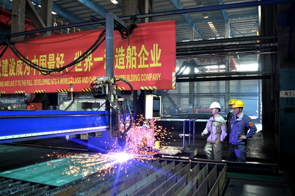 10月25日上午9:28,公司在東區(qū)鋼加車間舉行船舶開工點儀式,43#115000噸原油/成品油船船體結構件開始切割制作。