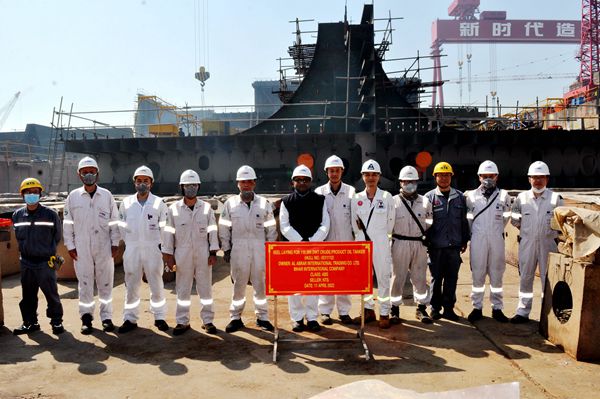28#50000噸Ⅱ類化學(xué)品船、12#110000噸油船進(jìn)塢合攏(圖)