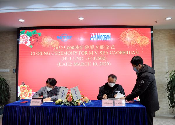 3月10日上午,公司為2#325000噸超大型礦砂船舉行交船簽字儀式,常務(wù)副總經(jīng)理張玉永與韓國船東泛洋海運(yùn)公司代表一起出席儀式,共同簽署交船文本。該型超大型礦砂船總長340米,垂線間長333.1米,船寬62米,船深29.5米,結(jié)構(gòu)吃水21.4米,載重32.5萬噸,入KR船級社。