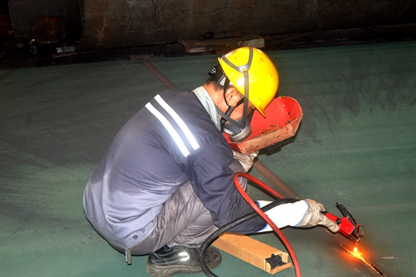 進入生產(chǎn)車間,映入眼簾的是一張張汗如雨下的面孔,其次看到的是有條不紊的生產(chǎn)景象,廠房作業(yè)區(qū)內(nèi)環(huán)境,僅室內(nèi)溫度就有40℃左右,每一位員工身上衣服如同水洗,但高溫始終未影響新時代造船員工的工作熱情,只看他們動作麻利,操作謹慎,嚴格工藝流程要求操作,把握好各個細小環(huán)節(jié),確保每一個成品的質(zhì)量,用實際行動展示著“戰(zhàn)高溫 斗酷暑 守崗位 促生產(chǎn)”的錚錚誓言。工服上的坨坨汗?jié)n,臉上快速流淌的汗水,就是他們實現(xiàn)自我價值的有力證明,他們是可敬可贊的,與烈日高溫比熱情,用忠誠執(zhí)著促生產(chǎn),用辛勤汗水書寫著新時代造船人別樣的美。
