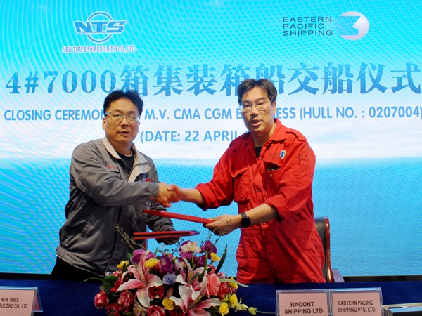 4#7000箱集裝箱船完工交付