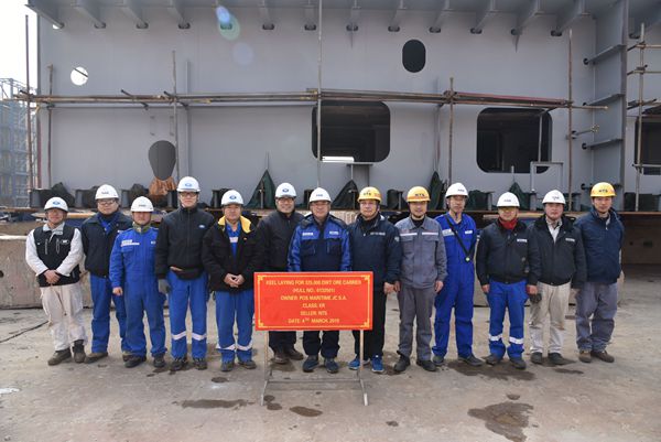 3月4日,公司舉行上臺(tái)合攏儀式,慶祝首制325000噸大型礦砂船船體進(jìn)塢合攏,公司常務(wù)副總經(jīng)理張玉永、副總經(jīng)理朱韓鋼、總經(jīng)理助理徐震宇與韓國船東Pan Ocean公司代表、KR船級(jí)社代表及公司相關(guān)人員出席儀式,一起點(diǎn)鞭炮、開香檳,祝愿該船船體順利進(jìn)塢合攏建造。