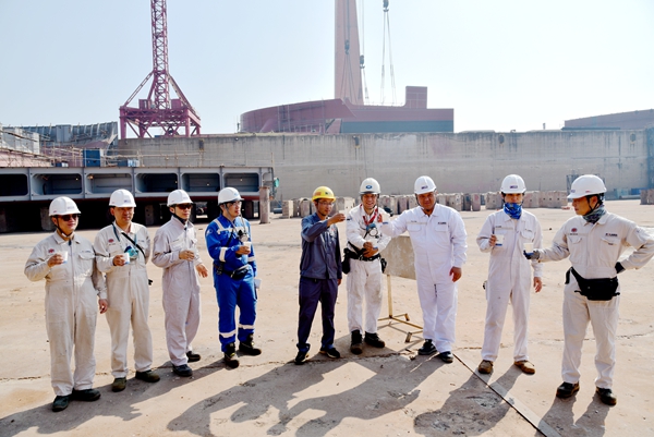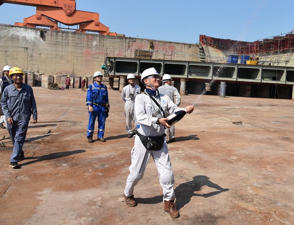 8月17日上午,20#、24#208000噸散貨船船體進(jìn)塢合攏儀式在公司3#塢內(nèi)分別舉行,總經(jīng)理助理丁柏英分別與韓國船東POLARIS現(xiàn)場(chǎng)經(jīng)理Han Min Goo 、韓國船級(jí)社代表黃成吉;韓國船東H-LINE SHIPPING現(xiàn)場(chǎng)經(jīng)理Lee Younghwan、韓國船級(jí)社代表王晨博先生等嘉賓共同見證。