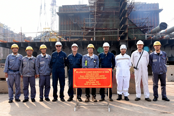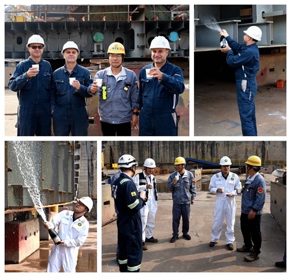 10月10日上午,公司在2#塢內(nèi)舉行船舶進(jìn)塢合攏儀式,50#115000噸油船、1#11400箱雙燃料動(dòng)力集裝箱船的船體分段開(kāi)始進(jìn)塢合攏。常務(wù)副總經(jīng)理張玉永分別與船東Dynacom、船東CONGLOMERATE MARITIME LIMITED代表出席活動(dòng)。