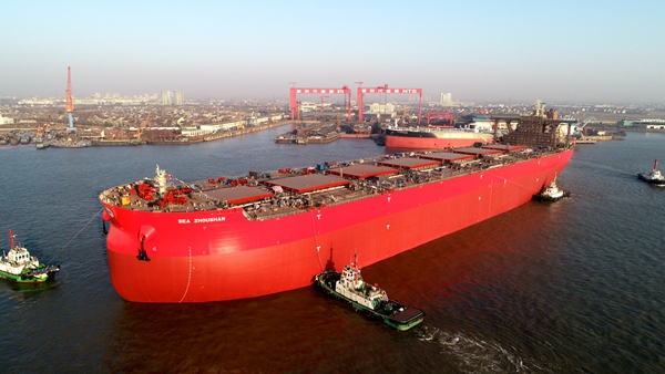 新年首艘船舶-——6#325000噸超大型礦砂船下水(圖)