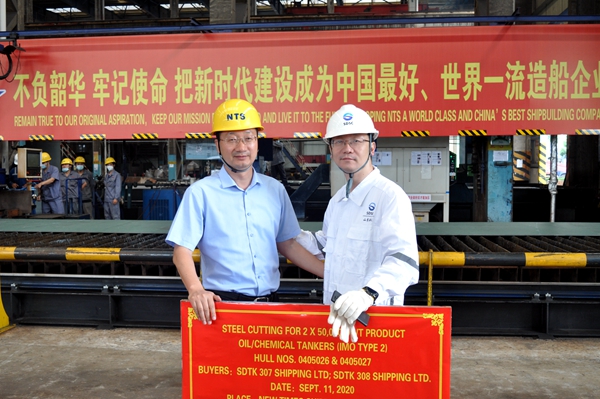 9月11日,公司在新區(qū)、東區(qū)鋼加車(chē)間分別舉行了兩艘115000噸油船、兩艘化學(xué)品/油船的開(kāi)工點(diǎn)火儀式,四艘船舶開(kāi)始生產(chǎn)建造。
