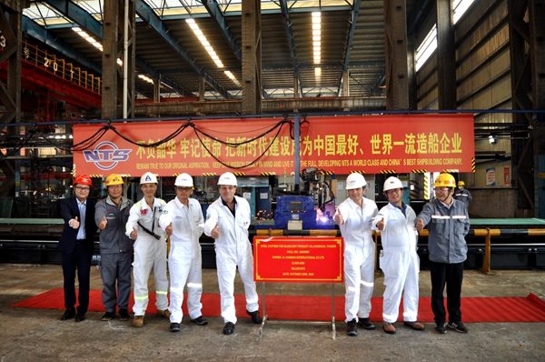 10月23日,公司在新區(qū)和東區(qū)鋼加車間分別舉行開工點火儀式,9#10#111000噸油船和4#5#50000噸化學品/油船同日開工建造,常務副總經(jīng)理張玉永、 總經(jīng)理助理丁柏英和船東沙特阿拉伯BIHAR公司代表、船級社代表共同出席活動,見證四艘船舶船體鋼板點火切割。