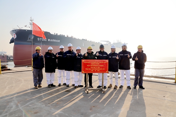 21日上午,公司3#船塢區(qū)域,79#80#157000噸油船先后在海事拖輪的牽引下駛出船塢,船舶下水工作如期完成,這兩艘船舶的順利下水,標(biāo)志著公司2024年度船舶下水30艘船舶的生產(chǎn)任務(wù)全面完成。