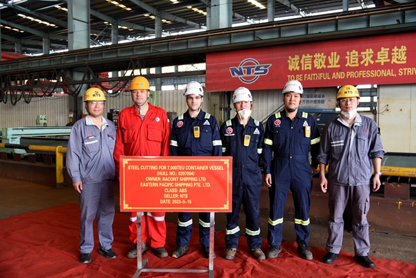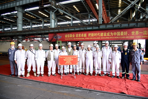 生產管理部部長陳月鋒、質量管理部部長秦鋒分別與船東Eastern Pacific Shipping Pte. Ltd.(EPS)代表、船東喜馬拉雅代表及船級社代表等相關人員出席活動,見證船舶開工建造。
