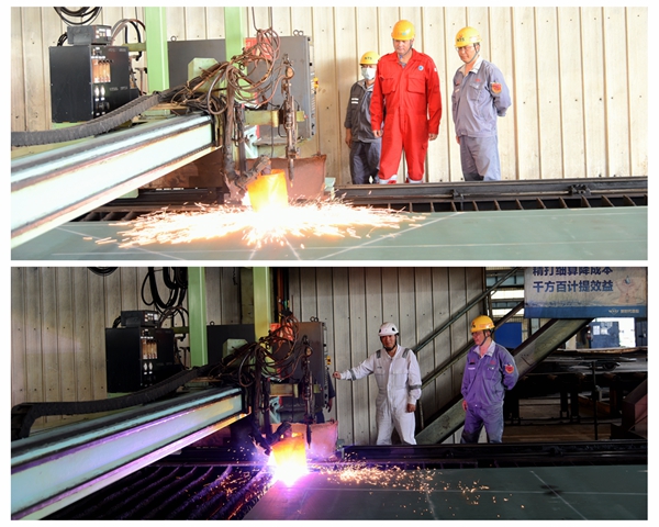 5月15日上午,公司在新區(qū)鋼加車間舉行船舶開工點火儀式,4#7000箱集裝箱船、42#210000噸雙燃料動力散貨船的船體結構件開始預制。