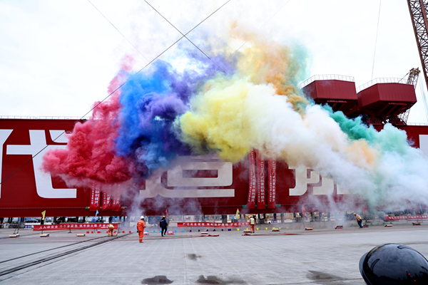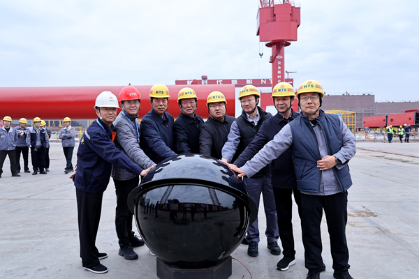 12月10日上午,1600t噸門式起重機(jī)提升啟動(dòng)儀式在新建4#塢塢尾隆重舉行,公司領(lǐng)導(dǎo)袁凱飛、朱炳康、劉海金、周燦榮、張玉永、袁衡、朱韓鋼、鄭忠、杜江、徐震宇、丁柏英、劉鋒等出席儀式。隨著儀式啟動(dòng)球開始點(diǎn)亮,1600噸門式起重機(jī)主梁根據(jù)預(yù)定計(jì)劃緩緩提升,這標(biāo)志著公司新能源船舶智造項(xiàng)目又一重大節(jié)點(diǎn)實(shí)現(xiàn),也標(biāo)志著企業(yè)船舶建造重型裝備的吊裝能力將再次突破。
