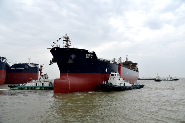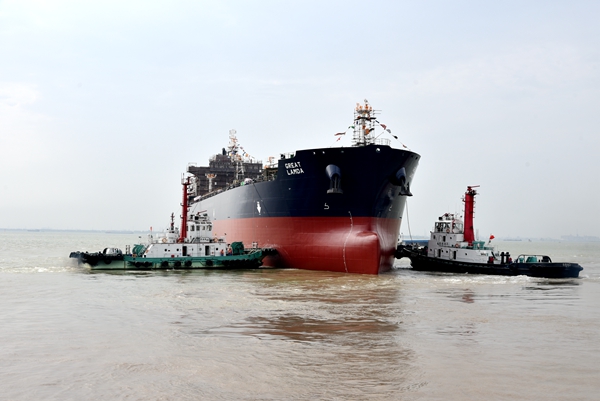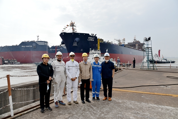 5月14日上午,在公司全體員工的共同拼搏下,生產(chǎn)全力加速,一日完成四大節(jié)點,分別是18#19#50000噸化學(xué)品/油船、67#158000噸油船等三艘船舶如期下水,6#208000噸散貨船完成試航項目順利返航。