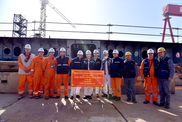 11月20日上午,公司副總經(jīng)理朱韓鋼與3#、4#65000噸散貨船的船東代表、船級社代表等嘉賓共同出席兩艘船舶船體進塢合攏儀式,兩船船體合攏組裝工作正式啟動。